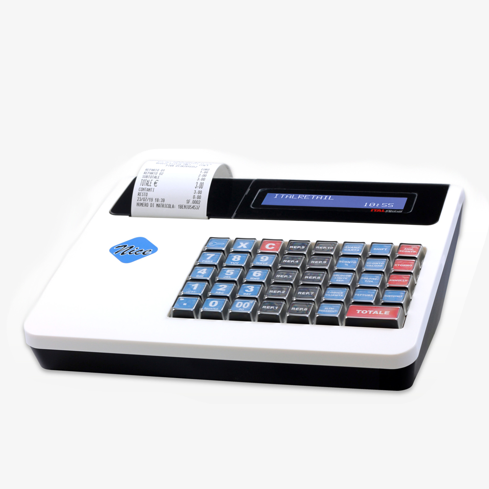 Registratore di cassa Telematico che coniuga un design accattivante con la semplicità d’uso della tastiera meccanica.